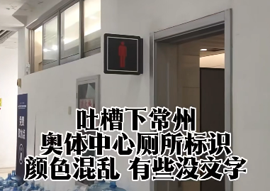 网友发布视频表示,奥体厕所标识颜色混乱,没有文字。