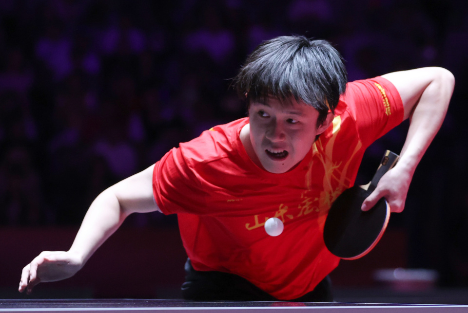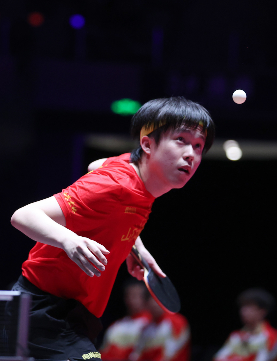 8月30日,山东魏桥·向尚运动队选手王楚钦在比赛中。他在单打比赛中3比0战胜四川丰谷队选手孙闻。新华社发(张利民摄)